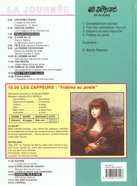 Le sujet : Série cathodi-comique. Une famille de sappeurs invétérés vit journellement le stress des programmations télévisuelles et craque régulièrement. heureusement, la télécommande a des piles neuves. Notre avis : " zap d'or " au festival de marne, cette série brosse le portrait d'une famille qui, sans être spécialement branchée, n'en est pas moins allumée. Divertissant, drôle et enjoué. Le public ne n'est pas trompé.