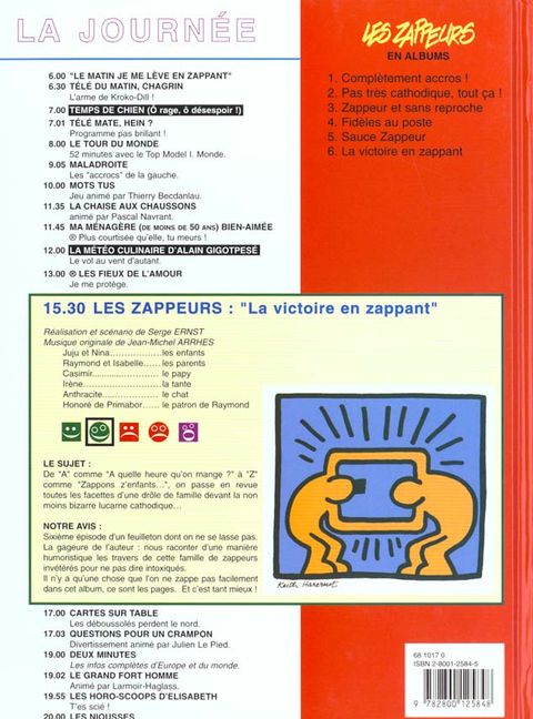 Le sujet : De " a " comme " a quelle heure qu'on mange ? " à " z " comme " zappons z'enfants. ", on passe en revue toutes les facettes d'une drôle de famille devant la non moins bizarre lucarne cathodique. Notre avis : Sixième épisode d'un feuilleton dont on ne se lasse pas. la gageure de l'auteur : nous raconter d'une manière humoristique les travers de cette famille de zappeurs invétérés pour ne pas dire intoxiqués. Il n'y a qu'une chose que l'on ne zappe pas facilement dans cet album, ce sont les pages. Et c'est tant mieux !.