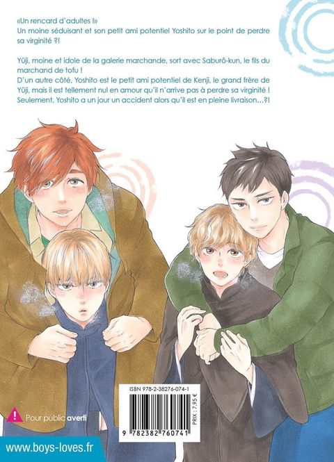 ûji, moine et idole de la galerie marchande, sort avec Saburô-kun, le fils du marchand de tofu ! D'un autre côté, Yoshito est le petit ami potentiel de Kenji, le grand frère de Yûji, mais il est tellement nul en amour qu'il n'arrive pas à perdre sa virginité ! Seulement, Yoshito a un jour un accident alors qu'il est en pleine livraison...?!