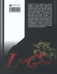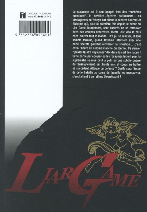 Le suspense est à son apogée lors des « enchères humaines », la dernière épreuve préliminaire. Les stratagèmes de Yokoya ont abouti à séparer Kanzaki et Akiyama qui, pour la première fois depuis le début du Liar Game Tournament, sont assurés de se retrouver dans des équipes différentes. C'est enfin l'ultime manche. Le dernier « jeu des Quatre Royaumes », décidera du sort de chacun !