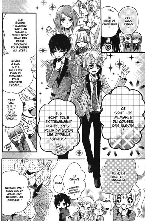 Luna Narumi est seule depuis toujours à cause de son apparence effrayante. Pour son entrée au lycée, elle compte bien se faire des amis. Mais cela ne se passe pas comme prévu. Non seulement elle ne parvient à sympathiser avec personne, mais en plus elle perd son logement ! C'est alors qu'Hikaru, président du conseil des élèves et idole de l'établissement, lui propose une chambre en colocation avec tout son groupe, les Génius. La jeune femme est sauvée, mais elle va vite s'apercevoir qu'il y a une contrepartie...