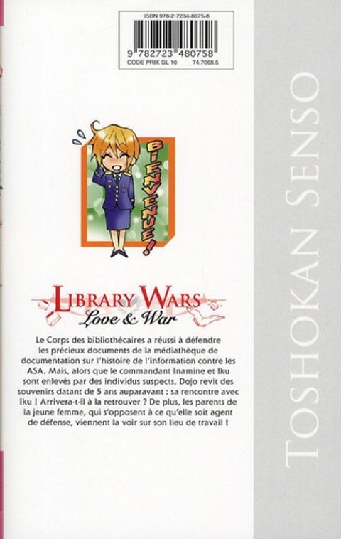 Le Corps des bibliothécaires a réussi à défendre les précieux documents de la médiathèque de documentation sur l'histoire de l'information contre les ASA. Mais, alors que le commandant Inamine et Iku sont enlevés par des individus suspects, Dojo revit des souvenirs datant de 5 ans auparavant : sa rencontre avec Iku ! Arrivera-t-il à la retrouver ? De plus, les parents de la jeune femme, qui s'opposent à ce qu'elle soit agent de défense, viennent la voir sur son lieu de travail !