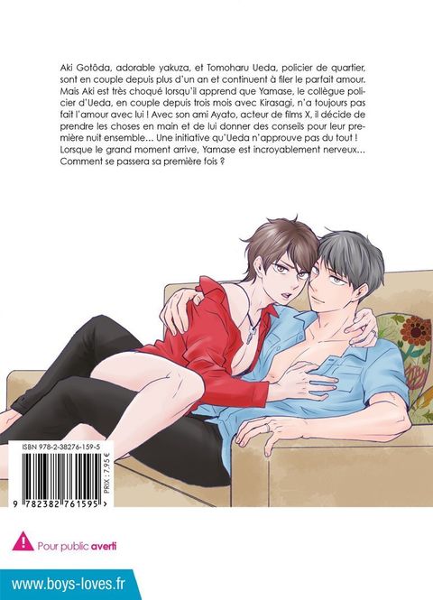 Aki Gotôda, adorable yakuza, et Tomoharu Ueda, policier de quartier, sont en couple depuis plus d'un an et continuent à filer le parfait amour. Mais Aki est très choqué lorsqu'il apprend que Yamase, le collègue policier d'Ueda, en couple depuis trois mois avec Kirasagi, n'a toujours pas fait l'amour avec lui ! Avec son ami Ayato, acteur de films X, il décide de prendre les choses en main et de lui donner des conseils pour leur première nuit ensemble... Une initiative qu'Ueda n'approuve pas du tout !Lorsque le grand moment arrive, Yamase est incroyablement nerveux... Comment se passera sa première fois ?