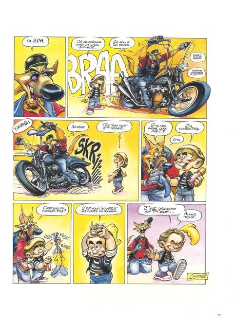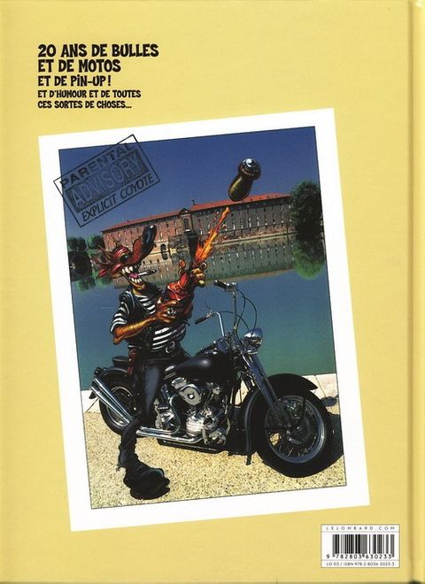 «Happy birthday, Litteul Kévin !» Eh oui ! Le personnage et la série fêtent leurs 20 ans. Le cadeau ? Ah... c est Coyote qui le fait ! En plus il s agit d un super cadeau : un album-souvenir qui revient sur ses vingt dernières années des premières tournées au Sli-Bar avec Mammouth et Piston à l'arrivée des Voisins du 109 en passant par la naissance de Litteul Kévin - au rythme des inimitables vrombissements de sa Harley Davidson fétiche. Évidemment, la part belle est faite aux ambiances viriles ! Mais qu on ne s y trompe pas : Coyote, c est aussi des sentiments, de la tendresse, une vraie joie de vivre qui transparaît dans des dialogues truculents débités à grand renfort de calembours, des situations à mourir de rire et dans chaque trait de son dessin, bien sûr ! Dans un style très caricatural, Coyote se moque des proportions et des poses naturelles, il s amuse. Le graphisme colle parfaitement au scénario : tout y est excessif et fignolé, en témoignent les effets de matière ou les ombres remarquablement reproduites. Si vous pensiez encore que les motards étaient de méchants gros bras tatoués, 20 Ans de Bulles et de Motos risque de bousculer pas mal de préjugés ! Coyote nous ouvre les portes de son atelier en même temps que celles de sa mémoire, pour un résultat aussi esthétique qu'émouvant !