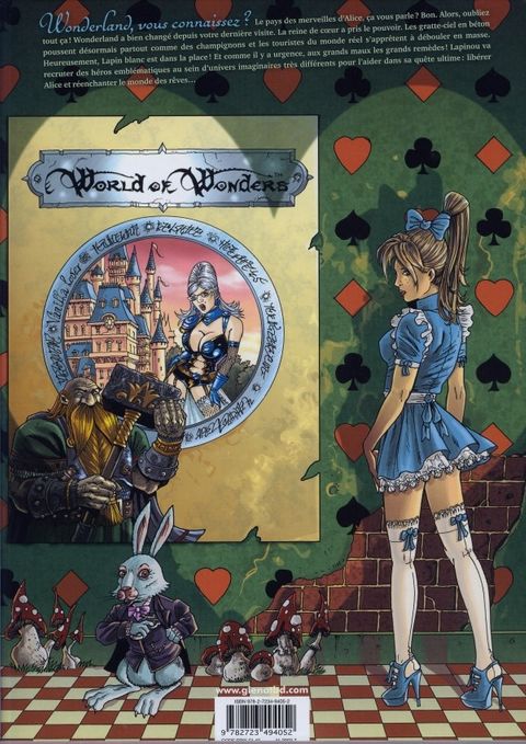 Dans la réalité, Alice est une icône sex & drugs & rock n'roll, que ses excès ont menée où elle se trouve aujourd'hui, entre la vie et la mort, entre rêve et réalité... Au pays des merveilles, la révolte gronde à Wondercity, mais la reine de coeur n'en a cure ! Elle a d'autres chats à fouetter : l'insaisissable Lapin blanc commence vraiment à lui courir sur le haricot ! Aux grands maux les grands remèdes, madame nous sort son joker : le chapelier fou. Pendant ce temps, Lapinou, Cassegrain pour les intimes, poursuit son périple en charmante compagnie...