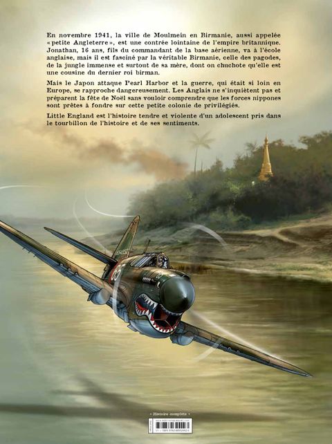 Novembre 1941, la ville de Moulmein en Birmanie, aussi appelée « Petite Angleterre », est une contrée lointaine de l'Empire britannique. Jonathan, 16 ans, fils du commandant de la base aérienne, va à l'école anglaise mais il est fasciné par la véritable Birmanie, celle des pagodes, de la jungle immense et surtout de sa mère, dont on chuchote qu'elle est une cousine du dernier roi birman. Mais le Japon attaque Pearl Harbor et la guerre, qui était si loin en Europe, se rapproche dangeureusement. Les Anglais ne s'inquiètent pas et préparent la fête de Noël sans vouloir comprendre que le Japon est prêt à fondre sur cette petite colonie de privilégiés.