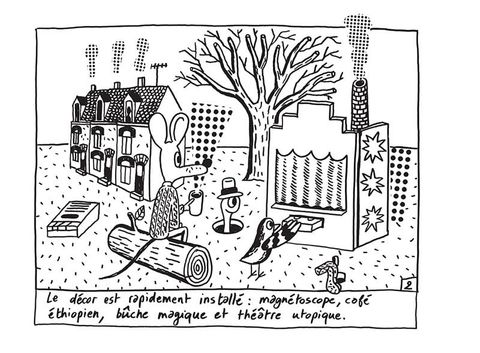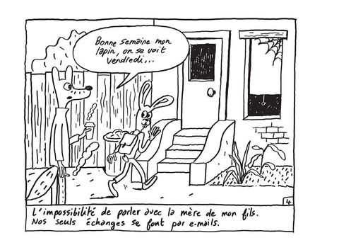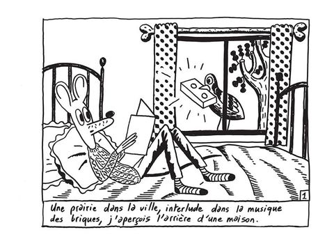 Littoral Un oiseau s'introduit par la fenêtre de la chambre d'une souris et lui tend une cassette VHS. Ni une ni deux, le mammifère aux rondes oreilles s'installe, un café à la main devant sa télévision - en réalité un ravissant théâtre miniature - pour visionner le film. Les images défilent, découvrant la vie de Joseph, jeune père à tête de renard qui travaille dans l'animation à New York et de Paul, son fils. Nous voilà embarqués pour un voyage dans le temps et l'espace, qui nous mènera des deli de Brooklyn aux briques rouges de Roubaix, de la vie à deux dans un étroit appartement new-yorkais au quotidien d'une famille recomposée dans une maison du nord de la France. Chronologique et elliptique, Littoral se déroule comme un film familial dont les images, capturées sur plusieurs années, s'altèrent parfois - cassette VHS oblige. Les épisodes présentés forment un collier de souvenirs sur lesquels Antony Huchette, avec son trait expressif, ses motifs et sa ronde de personnages à tête d'animaux, dépose une lasure douce et magique.