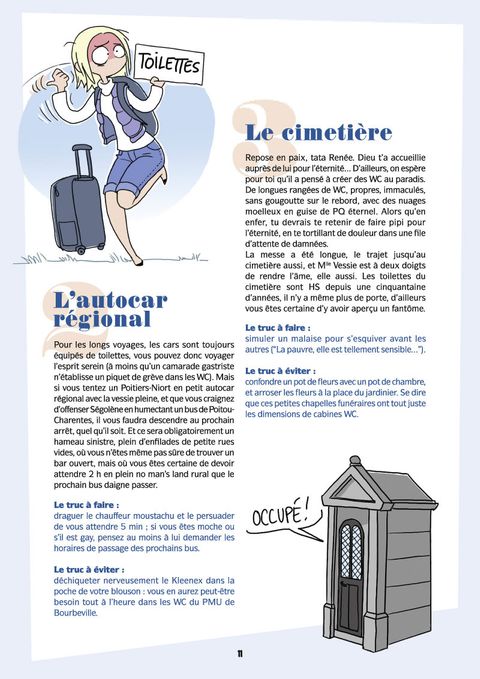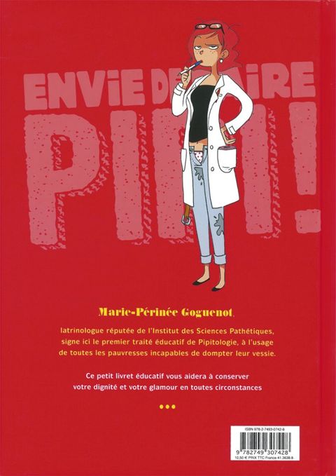 Que ce soient les files d'attente horriblement longues, les dames pipi pas très aimables ou la musique d'ambiance kitsch à mort. entre les toilettes et les filles, c'est une grande histoire ! Avec ce Livret éducatif pour les filles qui ont toujours envie de faire pipi, Marie-Périnée Goguenot - latrinologue de renom et spécialiste en pipitologie - nous éclaire, entre textes et illustrations, sur ce fléau que constitue l'envie pressante chez la gent féminine. Astuces, anecdotes croustillantes et analyses pertinentes composent ainsi cet ouvrage hilarant pour un hymne aux WC et à la vessie pleine. Un album qui pourra également intéresser les garçons (si, si) et peut-être répondre à la question qu'ils se posent TOUS : mais que font les filles aux toilettes pour être aussi longues ?