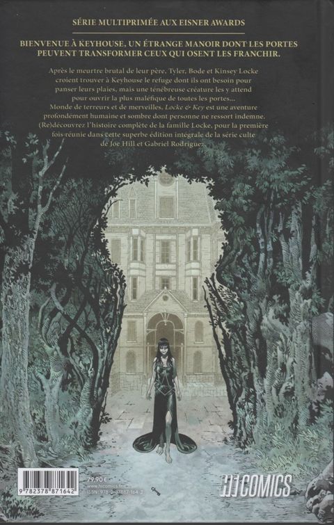 Star de Netflix depuis la diffusion de son adaptation, Locke & Key est la série indé qui voit les choses en grand ! Joe Hill et Gabriel Rodriguez vous invitent à Keyhouse, le manoir de la famille Locke. Après le meurtre brutal de leur père, Tyler, Bode et Kinsey croient y trouver le refuge dont ils ont besoin pour panser leurs plaies. Mais une ténébreuse créature les y attend pour ouvrir la plus terrifiante de toutes les portes... Monde de terreurs et de merveilles, Locke & Key est une véritable aventure à la Stephen King : profondément humaine et cruelle. Aucune chance de repartir indemnes de votre voyage dans l'étrange ville de Lovecraft ! (Re)découvrez l'histoire complète de la famille Locke pour la première fois réunie dans une édition intégrale, avec une couverture inédite signée Gabriel Rodriguez. " Toute l'habileté de Joe Hill consiste à brouiller les cartes à ouvrir des pans de récit jusqu'au dernier acte. Rodriguez, lui, insuffle une puissance brute aux clés, dont chaque apparition donne lieu à une explosion visuelle. " Libération " Lunatique, sensible et incroyablement convaincant, Locke & Key est le Sandman des années 2000. " Jim Zub