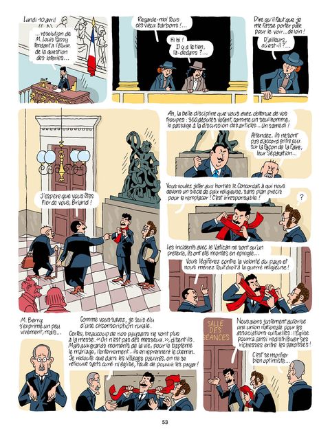 La loi de 1905 de Séparation des Eglises et de l'Etat a 120 ans et pas une ride ! Aristide Briand parachevait alors l'oeuvre de laïcisation engagée par la Révolution française. Ce récit du vote, mouvementé et haut en couleurs, de la loi fait écho aux débats actuels sur la laïcité et la démocratie parlementaire. Il évoque également les combats laïques de l'époque en matière scolaire et féministe.