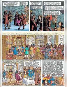 Loïs Lorcey est un apprenti peintre et décorateur qui fait ses premières armes au château de Versailles, sous Louis XIV. Le Roi Soleil surprend le jeune homme en galante situation, ce qui vaut à ce dernier d'être envoyé en Louisiane, "punition" pour le scandale créé par ses frasques. La mission de Loïs est de ramener le plus de dessins possibles de cette contrée lointaine et mal connue. Mais l'aventure croise son chemin en plein Atlantique, avec une tentative d'abordage du navire royal par des boucaniers. S'il se sort de ce mauvais pas, tout à son avantage, Loïs ne se trouve pas pour autant en plus grande sécurité sur la terre ferme. Indiens Natchez, en guerre plus ou moins ouverte avec les hommes blancs, tornade, intrigues de cour chez le gouverneur, duel avec le boucanier Braziliano, retour en France où l'attendent quelques mauvaises surprises, ... Loïs Lorcey se situe bien dans la lignée des héros picaresques et dans la tradition des meilleures créations de Jacques Martin. Pas une page de répit dans Le Roi Soleil !