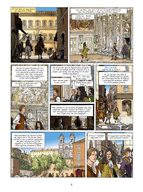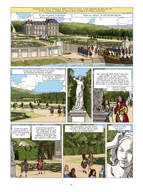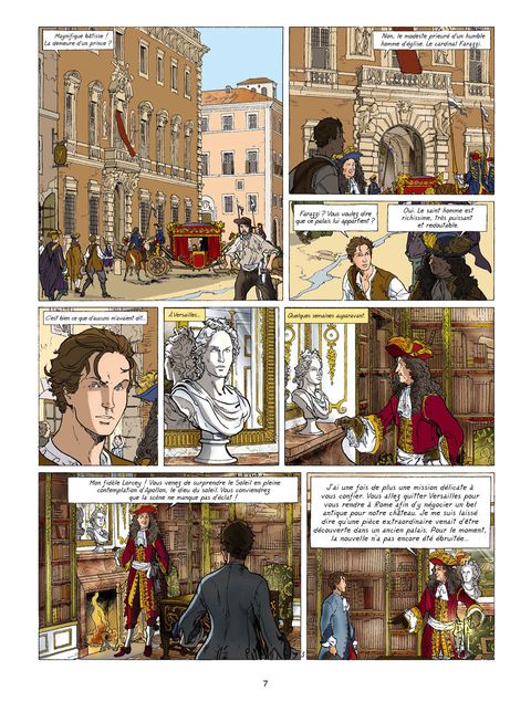 Flanqué de ses deux comparses de Reix et Maxime Réaux, Loïs Lorcey est à Rome, missionnés par Louis XIV pour y faire l'acquisition d'une statue antique réputée, tout en marbre rouge, dont le style a ébloui le roi. Mais sur place, les tensions diplomatiques entre Français et Espagnols et les relations difficiles du Roi-Soleil avec le pape Innocent XI compliquent la tâche de Loïs. À peine a-t-il localisé la statue qu'il se voit accuser de meurtre par l'homme qui règne sur le trafic d'antiquités, le redoutable cardinal Andrea Farazzi. Les aventures de Loïs Lorcey, dernier-né des héros créés par Jacques Martin, ont pour cadre la fin du XVIIIe siècle, alors que Louis XIV règne sur la France. Loïs est un jeune ouvrier employé au château de Versailles, que le roi prend en affection et à qui il confie diverses missions qui vont nourrir la chronique de ses aventures.