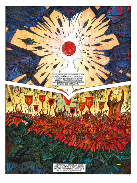 Druillet aux sources de la S.F. avec une nouvelle aventure de Lone Sloane Lone Sloane est toujours bloqué sur Delirius la bien nommée, lieu de plaisir à l'échelle galactique. Le voyageur solitaire du cosmos est en difficulté : il a été frappé d’une flèche d'effacement par les moines fanatiques de la Rédemption Rouge. Heureusement, il est accompagné par Mali, la fille de son ami martien Yearl, qui lui rappelle qu'on compte sur lui... D'abord pour s'extraire des sous-sols miséreux de Delirius, puis pour retrouver Yearl et Lance, l'amant de Mali… Enfin pour sauver les habitants de Delirius et ceux de la galaxie de la folie meurtrière ! La lutte du Bien contre le Mal est le combat éternel de Lone Sloane. Existe-t-il une autre voie pour l'homme aux yeux rouges ? Peut-il décider d'être libre et neutre quand l'univers l'appelle à se battre ? La grande roue du destin ne cesse jamais de tourner. Elle mettra enfin face à face Lone Sloane avec son véritable ennemi, Shaan le tyran, l'Imperator de toutes les galaxies.. Cet album marque le grand retour de Druillet et de son mythique héros. C'est une fantaisie baroque, non dénuée d'humour, une explosion graphique du niveau de celles qui ont révolutionné la S.F. au début des années 70. C'est également un hommage à Jacques Lob, grand auteur et ami de Druillet, qui avait commencé à travailler sur cet album avant sa disparition prématurée.