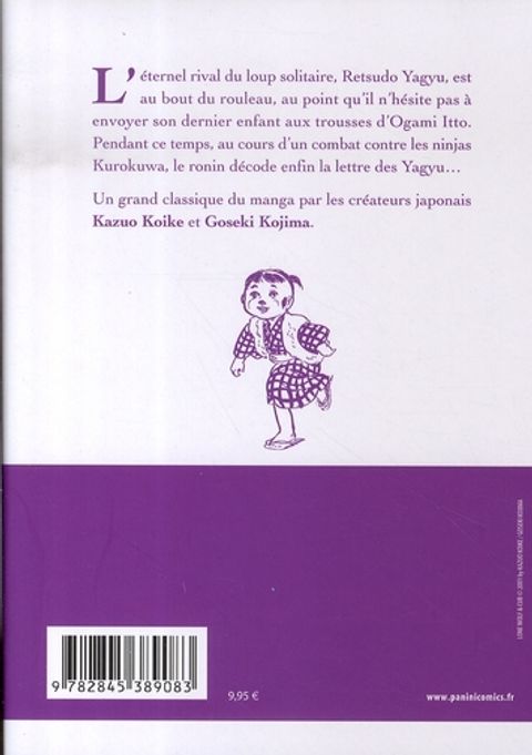 l'éternel rival du loup solitaire, retsudo yagyu, est au bout du rouleau, au point qu'il n'hésite pas à envoyer son dernier enfant aux trousses d'ogami itto. pendant ce temps, au cours d'un combat contre les ninjas kurokuwa, le ronin décode enfin la lettre des yagyu... un grand classique du manga par les créateurs japonais kazuo koike et goseki kojima.