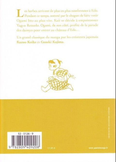 L'heure de l'ultime combat a enfin sonné pour Ogami Itto et Retsudo Yagyu, et rien ne les arrêtera ! L'enjeu est crucial puisque l'issue de l'affrontement décidera du destin des deux clans. Ne manquez pas le dernier volume de l'une des plus grandes sagas de tous les temps !