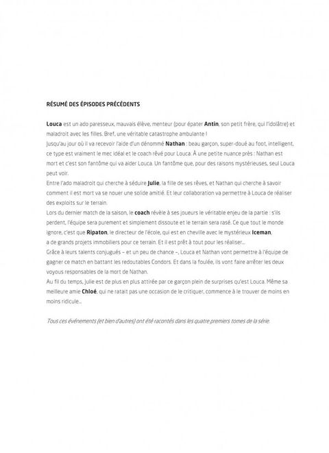 Alors que grâce à Louca (et un tout petit peu à Nathan, son coach fantôme), l'équipe de foot du lycée Quanfrin a évité la relégation et la disparition pure et simple, un incendie criminel vient détruire les locaux et le terrain de foot de l'école. Mais quand un généreux donateur offre de nouvelles installations au coach, Louca et Nathan décident donc de se mettre à la recherche d'une nouvelle équipe. Pour constituer cette dream team, Nathan propose à Louca de recontacter ses anciens équipiers. Car, étonnamment, tous les anciens partenaires de terrain de Nathan se sont détournés du foot pour s'éclater dans d'autres sports. Pour les convaincre d'intégrer l'équipe, il n'y a qu'une solution : que Louca défie (et batte) chacun dans son sport de prédilection ! Inutile de préciser que c'est pas gagné... Comme si ça ne suffisait pas, Julie, la "presque petite amie de Louca", lui fait la gueule. Et Nathan refuse de raconter à Louca ce qui s'est passé durant cette soirée où visiblement il n'a pas été à la hauteur des attentes de sa dulcinée...