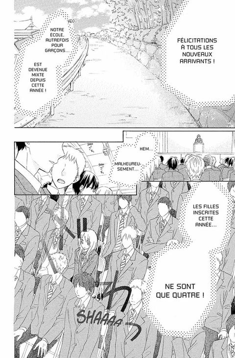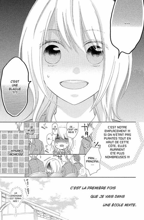 Hinako n'a jamais été très douée avec les garçons et a toujours fréquenté des écoles pour filles. C'est pourquoi aujourd'hui, alors qu'elle s'apprête à débuter sa nouvelle vie de lycéenne dans un établissement qui ne compte que quatre filles, elle est un peu nerveuse... En classe, elle se retrouve assise à côté de Mizuki, un garçon très taquin, et quant au délégué, Shun, il ne cesse de lui lancer des regards de mépris... Comment doit-elle interpréter le comportement de ces garçons ?