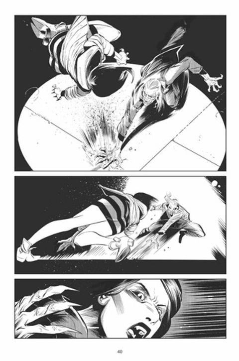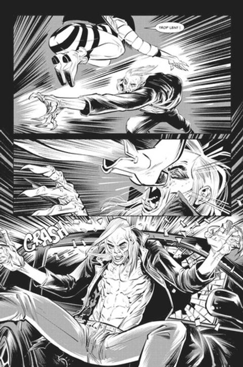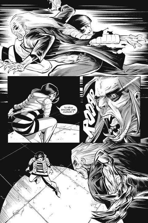 Le trait est précis, travaillé et percutant. Danilo Beyruth prouve que le noir et le blanc et leurs nombreuses déclinaisons sont des couleurs à part entière, faisant le choix de donner à ses planches une priorité absolue au graphique, et ce, au détriment du texte et des échanges. De prime (...) Voir le commentaire