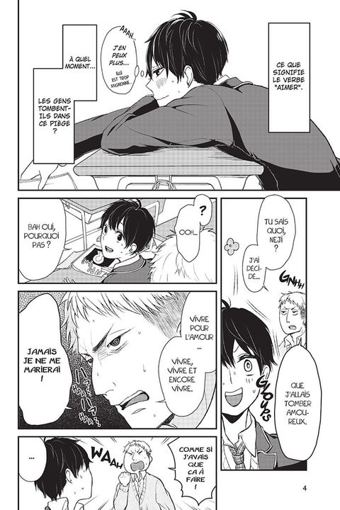 Je ne savais pas trop quoi penser en commençant ce tome, mais je suis bien emballée au final! Notre protagoniste est un gentil garçon, classique, un peu noeudnoeud sur les bords (et éperdument amoureux de Takasaki. Le concept d'avis gouvernemental vous mettant de force en couple avec la personne la plus compatible (...) Voir le commentaire
