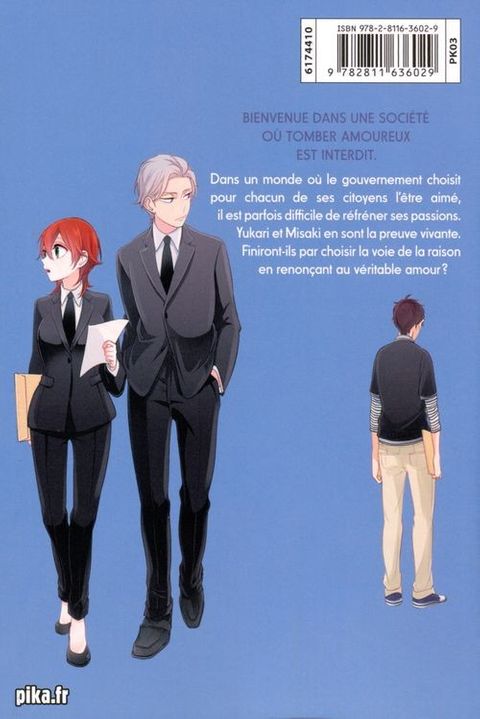 Les gens tombent amoureux. Même dans un monde où le gouvernement choisit pour chacun de ses citoyens l’être aimé, il est parfois difficile de freiner ses passions. Yukari et Misaki en sont la preuve vivante, la preuve qu’un amour « naturel » peut encore exister. Shû Igarashi, une mystérieuse jeune fille, se permet de questionner le terme de « partenaire idéal », de faire la différence entre la personne qu’on aime et celle que le gouvernement a fixé pour chacun. Lequel choisir quand l’amour ne peut être vécu qu’une seule et unique fois ? L’amour est beau, l’amour est le miroir de nous-même. L’amour change le monde.