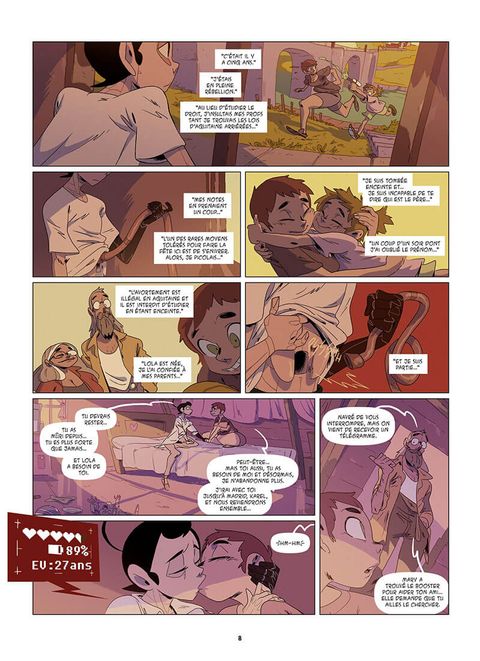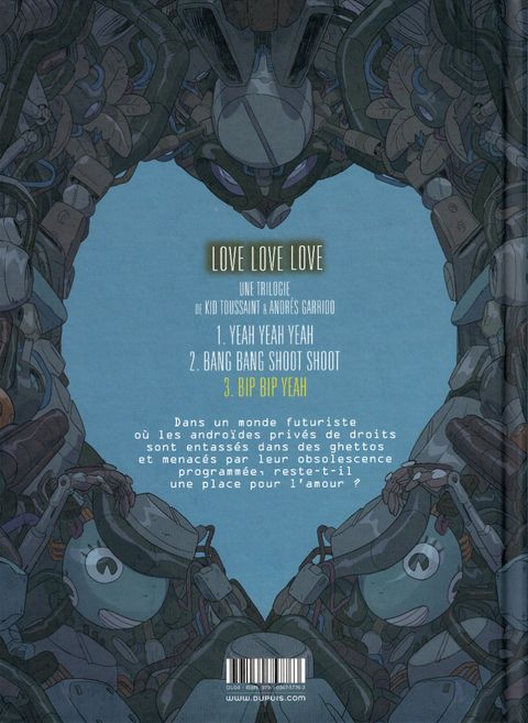 La conclusion d'une sublime histoire d'amour, à la fois futuriste et intemporelle, où Kid Toussaint et Andres Garrido interrogent avec brio le rapport de nos sociétés modernistes aux IA. Le Royaume d'Aquitaine. Un territoire où les IA sont interdites, mais où Elle a décidé de se cacher chez ses parents, en compagnie de Karel, son amoureux mécha. Alors que Lola, la petite fille d'Elle, fait connaissance de son inattendu beau-père, leurs potes Medhi et Dave tentent de rejoindre le couple de fuyards, qu'ils espèrent aider. Un renfort pas inutile, puisque de nombreux poursuivants les traquent, dont Wal Acto, un terrible chasseur de primes robotisé, ainsi que la police qui soupçonne Elle d'une série de meurtres de méchas... Le jeune couple parviendra-t-il à Madrid, où Elle espère repousser la date d'obsolescence programmée de Karel ?