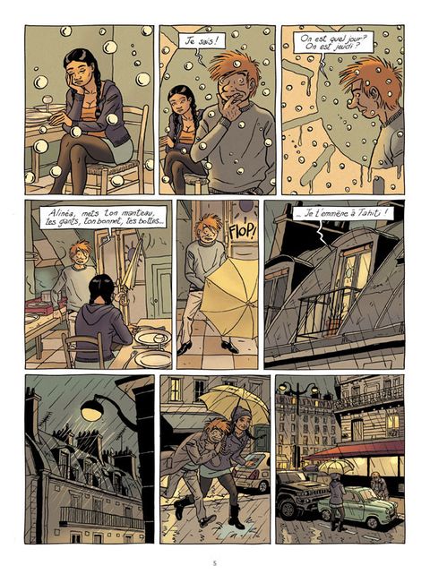 Alinéa, la douce amie de Luc Leroi, a décidé de rentrer à Tahiti. Elle a le mal du pays. Pour combler le vide de sa tristesse, Luc l'emmène au musée d'Orsay voir les toiles tahitiennes de Gauguin, dont il admire l'oeuvre. Alinéa finit par convaincre Luc de l'accompagner à Papeete. Celui-ci est accueilli dans la maison familiale de sa fiancée. Elle habite encore chez ses parents et personne ne trouve rien à redire à leur couple si ce n'est qu'il est plus pratique d'avoir un amoureux près de la maison plutôt qu'à l'autre bout du monde. Luc cependant doit rentrer à Paris. Les parents d'Alinéa lui offrent un ukulélé : il contient toutes les chansons que vous aimez, lui disent-ils. Après avoir survolé, au-dessus de l'océan Pacifique, la ligne de changement de date, Luc Leroi se retrouve à Paris, son ukulélé à la main. Dans une rue déserte, il est abordé par un homme bizarrement vêtu, couvert d'un chapeau melon. Le prenant sans doute pour un autre, l'homme le conduit, « pour la soirée du lundi », chez Paul Gauguin.