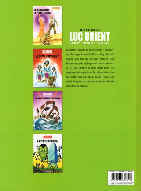 Remis du périple cosmique de Terango, Luc Orient, Lora et le Pr. Kala peuvent se consacrer à des problèmes plus terrestres mais non moins redoutables: manipulations génétiques ou tentatives de contrôle mental. Autant de périls en prise directe avec les angoisses de la Guerre Froide et de ses conséquences scientifiques. Greg et Eddy Paape s'amusaient invariablement à habiller ces dangers d'un vernis mystique pour mieux le craqueler par la suite, rendant à la science ce qui lui appartient - une position d'une modernité peu courante de nos jours...
