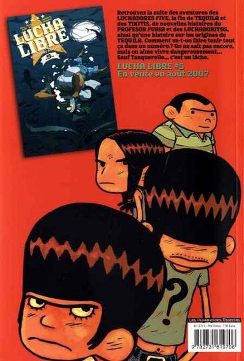 retrouvez la suite des aventures des luchadores five, la fin de tequila et des tikitis, de nouvelles histoires du profesor furia et des luchadoritos, ainsi qu'une histoire sur les origines de tequila. comment va-t-on faire tenir tout ça dans un numéro ? on ne sait pas encore, mais on aime vivre dangereusement... sauf tanquerelle... c'est un lâche.