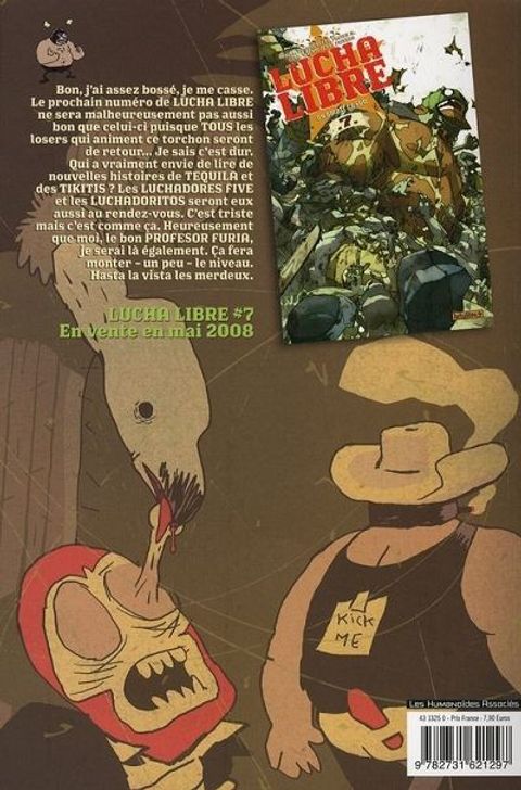 - Première histoire courte de 10 planches du Profesor Furia qui nous initiera à ce fameux traité de savoir-vivre que le professeur met un point d'honneur à enseigner à ces petits merd... heu... à ses apprentis. Par Ines Vargas et Nikola Witko. - Suite et fin de la 2nde histoire des Luchadores Five par Bill et Jerry Frissen, - 6 nouvelles tranches de vie des Luchadoritos par Frissen et Tanquerelle. - Double bonus : 1 histoire courte donnant la vedette au pourfendeur de ces dames, Paquito Furioso, mis en image par un nouveau venu, Mickael Roux + 1 histoire courte de 3 planches sur El Muro : le golem Luchador.