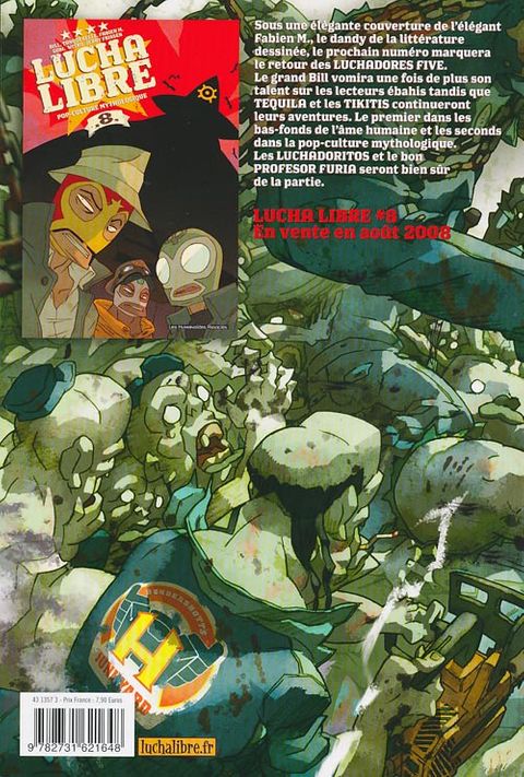 La bande dessinée déjantée des Humanos continue de défricher de nouveaux territoires où se conjuguent là encore humour énorme et dessins sophistiqués. Le numéro 6 avait laissé le lecteur sur le carreau, exténué par la prise de pouvoir du Profesor Furia, un homme de goût dont les rares défauts sont l'alcool, les femmes et la cruauté mentale. La couverture de ce numéro 7 affiche d'emblée la couleur : Tequila revient et il n'est toujours pas content. La nouvelle aventure qui commence s'apparente au road-movie dans une version... dantesque. Ce numéro verra aussi le démarrage de la nouvelle histoire des Tikitis, et les auteurs n'ayant peur de rien, c'est purement et simplement un remake du poème épique d'Homère, L'Iliade, que vont vivre les fameux retraités de la lutte mexicaine. Les Luchadoritos apportent leur dose indispensable de tendresse et de fraîcheur sans laquelle ce magazine de brutes ne vaudrait pas d'être acheté et lu. Bref, c'est un festival de bras cassés et de coups tordus. Seul Bill manque momentanément à l'appel, mais sera de retour avec les Luchadores Five dans le huitième opus de l'anthologie, à paraître en août.
