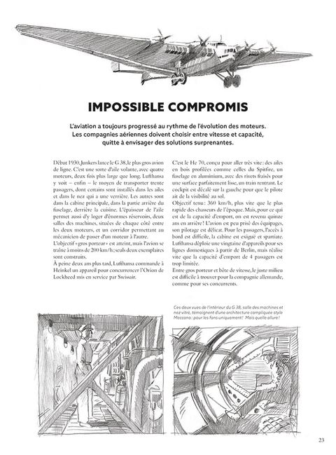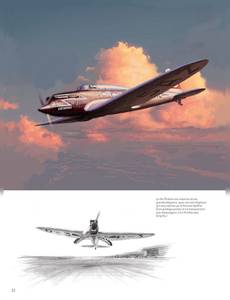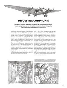 Une histoire de l'aviation commerciale illustrée par Lucio Perinotto, Peintre de l'air et de l'espace, illustrateur des couvertures du Fana de l'aviation. Les illustrations sont un mélange de travaux à l'huile sur toile, de dessins au crayon et de mise en couleur informatique.