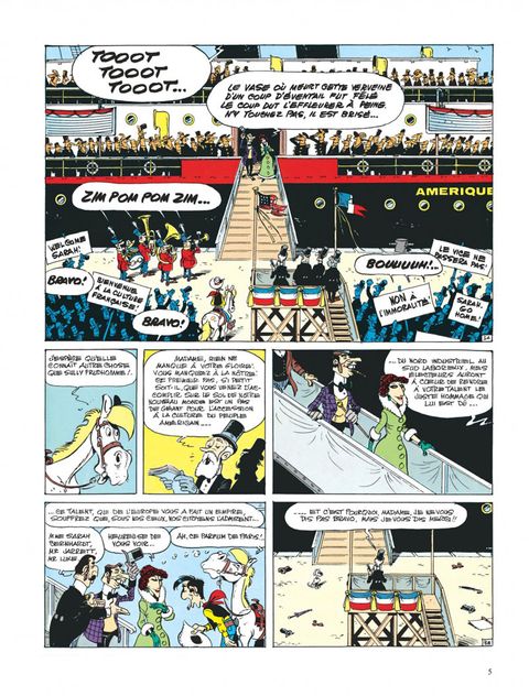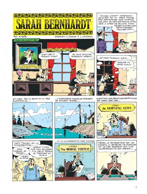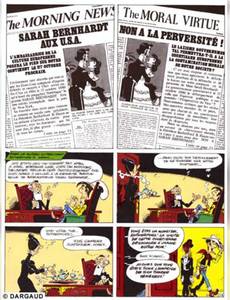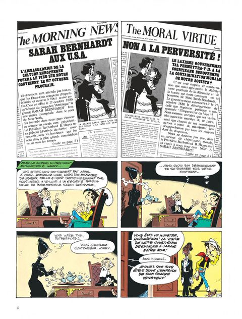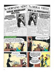 Lucky Luke doit veiller à la sécurité personnelle de Sarah Bernhardt, en tournée aux Etats-Unis.