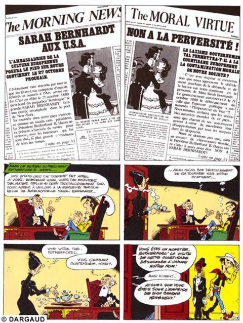 "Sarah Bernardt" est escortée par notre cow-boy lors de sa tournée. Ce tome offre une nouvelle fois une plongée divertissante dans le monde du western avec de nouvelles situations comiques toujours très bien trouvées. Une lecture qui plaira à tous les fans de Lucky Luke.
