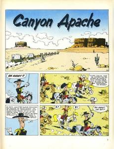 **Canyon Apache (1971)** Dans "Canyon Apache", Lucky Luke se retrouve confronté à une tribu d'Apaches alors qu'il traverse un canyon dangereux. Ce tome offre une aventure captivante et riche en suspense, avec des scènes de poursuite et des confrontations tendues. Les dessins de Morris capturent la grandeur et la beauté sauvage (...) Voir le commentaire