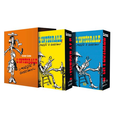 L'intégrale en 2 volumes sous coffret des aventures du plus célèbre cowboy dessinées et scénarisées par Morris et Goscinny