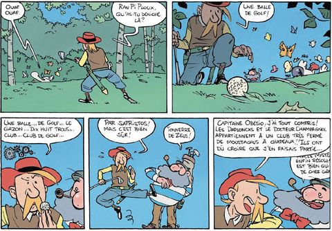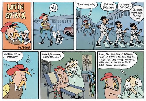 Lutin Spirix, c'est un peu LE héros : un mix entre Lucky Luke, Tintin, Spirou et Asterix. Il est journaliste, gaulois, cow boy et groom, il a tous les talents, il vit des aventures plus vite que son ombre, il est accompagné de plusieurs compagnons : le capitaine Obésio, le professeur Champagnol et, bien entendu, son chien, le fidèle Ran Pi Ploux Ses adversaires sont, entre autres, les Daploncx, trois affreux frères jumeaux triplés porteur de chapeau melon et de moustache en D ou en T ou les Schtrumpführer, peuple guerrier jaune aux yeux bleus. Héros au coeur pur, il doit résoudre de passionnantes aventures au café du commerce, psychanalyser les hordes hystériques de strumpfürer ou tenter de libérer un enfant japonais de son addictions aux jeux vidéos. Un héros qui devrait valoir à son auteur et à son éditeur un procès retentissant par les plus grandes maisons d'édition. On a hâte.