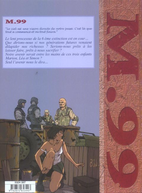 "le ciel est une vision directe de, notre passé. c'est là que tout a commencé et oú tout finira. " le lent processus de la 6e extinction est en cour. que dirions-nous si nos générations futures venaient dilapider nos richesses ? serions-nous prêts à les laisser faire, prêts à nous sacrifier ? notre avenir serait entre les mains de ces trois enfants marion, léa et simon ? seul l'avenir nous le dira.