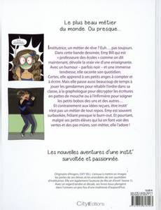 Institutrice, un métier de rêve ? Euh... pas toujours. Dans cette bande dessinée, Emy Bill qui est " professeure des écoles " comme on dit maintenant, dévoile la vraie vie d'une enseignante. Avec un humour - parfois noir - et une immense tendresse, elle raconte son quotidien. Certes, elle apprend à ses petits anges à compter et à écrire. Mais elle passe aussi beaucoup de temps à jouer les gendarmes pour rétablir l'ordre dans sa classe, à la graphologue pour décrypter les écritures en pattes de mouche ou à l'infirmière pour soigner les petits bobos des uns et des autres... Et contrairement aux idées reçues, être instit' n'est pas un métier de tout repos. Emy est souvent surbookée, frôlant presque le burn-out. Et pourtant, malgré ses petits élèves qui lui en font voir des vertes et des pas mûres, son métier, elle l'adore !