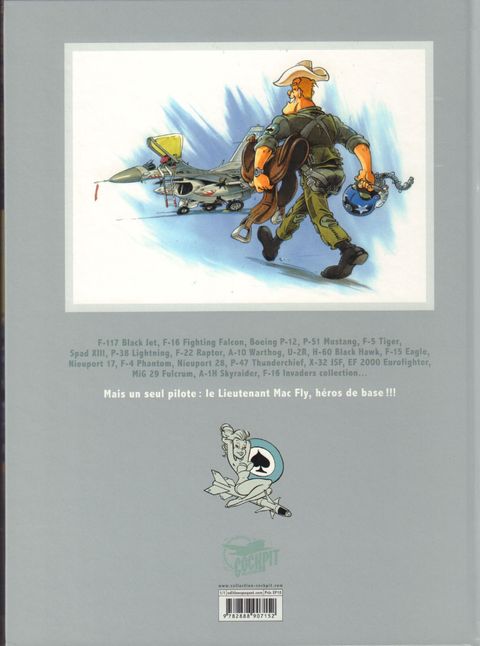 F-117 Black Jet, F-16 Fighting Falcon, Boeing P-12, P-51 Mustang, F-5 Tiger, Spad XIII, P-38 Lightning, F-22 Raptor, A-10 Warthog, U-2R, H-60 Black Hawk, F-15 Eagle, Nieuport 17, F-4 Phantom, Nieuport 28, P-47 Thunderchief, X-32 JSF, EF 2000 Eurofighter, Mig 29 Fulcrum, A-1H Skyraider, F-16 Invaders collection... Mais un seul pilote : le Lieutenant Mac Fly, héros de base !!!