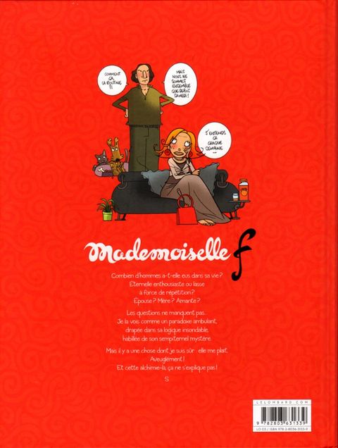 Souvent femme varie Mademoiselle F. Combien d'hommes a-t-elle dans sa vie ? Plus ou moins qu'un par semaine ? A-t-elle des enfants ou sont-ils ceux de ses compagnons ? S'est-elle mariée ou étaient-ce de simples répétitions ? Il y a pléthore de questions. J'avoue ne pas très bien cerner le personnage. Je la vois comme un véritable paradoxe ambulant. Sa logique est insondable et son mystère m'attire. Mais il y a une chose dont je suis sûr. Elle me plaît. Aveuglément ! Je vais peut-être en souffrir, mais qu'importe. J'ai des papillons dans le ventre. Et cette alchimie-là, ça ne s'explique pas. S.