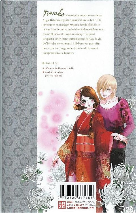 Towako n'ayant plus aucun souvenir de Yûga, Ritsu en profite pour séduire sa belle et la demande en mariage. Setsuna décide alors de se lancer dans la course en lui demandant également sa main ! De son côté, Yûga réalise qu'il ne peut supporter l'idée qu'un autre homme partage la vie de Towako et commence à mettre en place un plan afin de sauver les cinq grandes famille du Japon et récupérer ainsi sa femme...