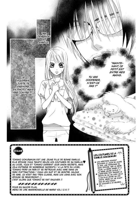 Le bonheur conjugal de Towako et Yûga est en danger ! En effet, Renjô, le mystérieux inconnu de l’île aux singes, s’avère être, outre un de leur professeur, l’héritier d’une des plus puissantes familles du Japon. Et il menace de ruiner la famille Gokurakuin et l’avenir de Yûga si la jeune fille n’accède pas à son désir de l’épouser. Et comme un malheur n’arrive jamais seul, une redoutable rivale va s’interposer entre Towako et son mari…