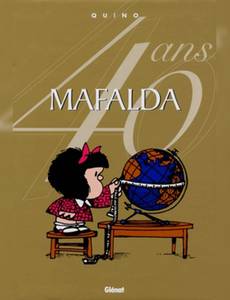 Mafalda est connue dans le monde entier. Depuis l'Argentine, son pays de naissance, elle a parcouru tout le globe. Est-ce à cause de sa philosophie teintée de cynisme, sa candeur innocente contre-balancée par un réalisme forcené ? A moins que ce ne soit cet humour propre à tous les enfants, même quand ils sont devenus grands, qui n'ait forgé la renommée de cette série. En cette petite fille qu'est Mafalda, une enfant plus mûre que la majorité des adultes, Quino traque les défauts de notre société, ses aberrations et ses injustices et, avec désinvolture et absurdité, nous les rend plus supportables. A l'occasion du 40ème anniversaire de la plus célèbre petite fille philosophe, les Editions Glénat rééditent l'intégrale de Mafalda avec une jaquette dorée. L'écrin est à l'image du contenu ! Des planches d'une rare intensité pour un message qui n'a pas pris une ride. Un cadeau qu'on aimerait tous se faire offrir !