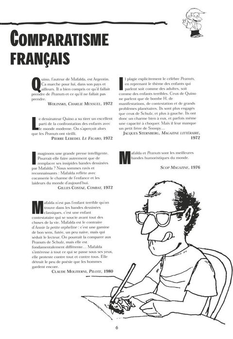 Mafalda, ou « la vérité sort de la bouche des enfants ». Si l’ouvrage semble présenter un côté un peu enfantin et est assez simple à aborder pour les enfants, les adultes ayant un peu de culture historique et politique sur l’Argentine d’il y’a quelques années pourront avoir un regard très différents (...) Voir le commentaire