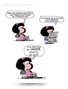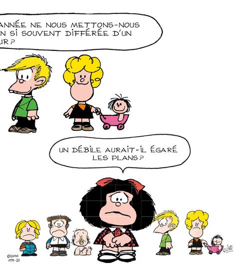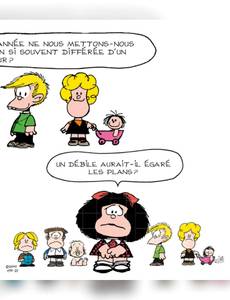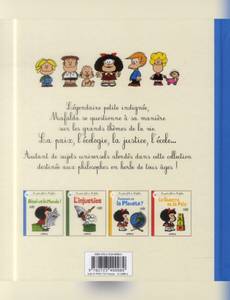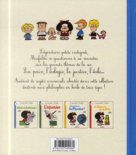La petite philo de Mafalda : Mafalda se pose beaucoup de questions. Beaucoup trop, ce qui ne manque pas d'exaspérer ses proches. Ceux-ci, souvent dépassés par la maturité de l'enfant, ne savent pas répondre à ses interrogations toujours plus nombreuses. En 2014, Mafalda fête ses 50 ans ! Cette gamine à la tignasse brune, curieuse et avide de découvrir le monde, est devenue un emblème dans son pays d'origine, l'Argentine, mais aussi dans le monde entier ! En cinq décennies, elle aura marqué le monde de la bande dessinée grâce à son humour subtil et l'engagement contestataire de son auteur. À l'occasion de cet anniversaire exceptionnel, P'tit Glénat lance une série d'albums jeunesse pour faire partager aux tout-petits la philosophie et les initier aux grandes questions à travers le prisme de la petite héroïne intemporelle de Quino ! Ainsi, « La petite philo de Mafalda » comprendra 8 albums sur des thématiques universelles, dont les 4 premiers paraîtront en janvier 2014. Ainsi va le monde : Mafalda se sent concernée par le devenir de l'humanité alors que les adultes qui l'entourent ne se préoccupent que de choses futiles. Que faire de sa vie quand le monde ne tourne pas rond