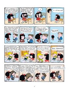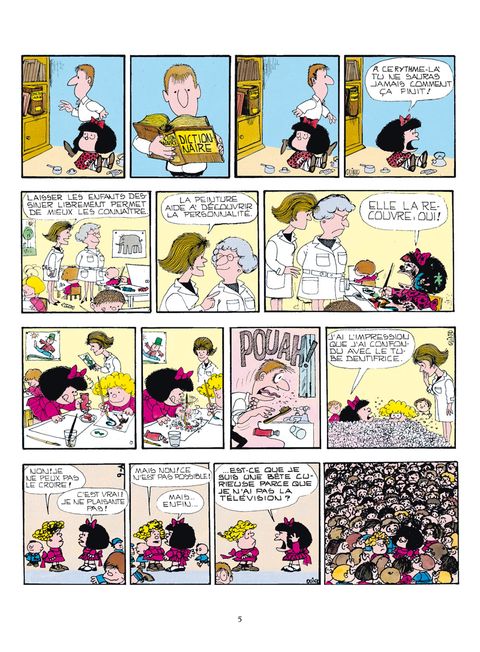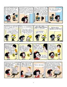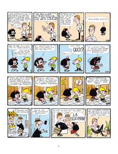 On ne présente plus Mafalda, petite fille qui découvre la vie, ses joies, ses absurdités et ses horreurs. À travers l'éveil d'un enfant, Quino nous livre sa réflexion sur le monde et sur l'étrange animal qui le peuple : l'être humain. Quino donne naissance à Mafalda en 1964, personnage contestataire et anticonformiste de 10 ans, qui fera de lui un dessinateur mondialement reconnu.Les éditions Glénat sont fières de vous présenter la réédition complète de cette série emblématique à travers une nouvelle maquette sans aucun doute attrayante pour toutes les générations ! Petit bonus pour les inconditionnels, bibliophiles ou collectionneurs : une fois la série complète rééditée (juillet 2011), les tranches de tous les tomes rassemblés composeront un dessin décoiffant !