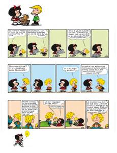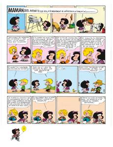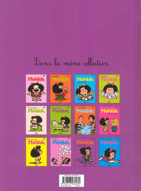Mafalda, 46 ans, toutes ses dents et toujours aussi fraîche et impertinente ! On ne présente plus Mafalda, petite fille qui découvre la vie, ses joies, ses absurdités et ses horreurs. À travers l'éveil d'un enfant, Quino nous livre sa réflexion sur le monde et sur l'étrange animal qui le peuple : l'être humain. Quino donne naissance à Mafalda en 1964, personnage contestataire et anticonformiste de 10 ans, qui fera de lui un dessinateur mondialement reconnu. Les éditions Glénat poursuivent la réédition complète de cette série emblématique avec une nouvelle maquette sans aucun doute attrayante pour toutes les générations ! Petit bonus pour les inconditionnels, bibliophiles ou collectionneurs : cette réédition des aventures de Mafalda une fois complétée avec les 12 tomes, les tranches de tous les tomes rassemblés composent un dessin décoiffant !