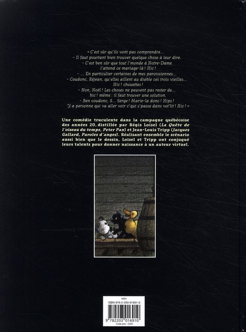 une comédie truculente dans la campagne québécoise des années 20, distillée par régis loisel et jean-louis tripp. réalisant ensemble le scénario aussi bien que le dessin, loisel et tripp ont conjugué leurs talents pour donner naissance à un auteur virtuel.