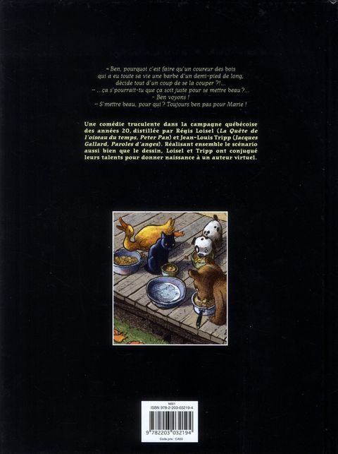 Loisel et Tripp ont concocté ensemble, avec une gourmandise très communicative, une chronique énergétique et très humaine, peuplée de personnages intenses et savoureux. Leur attachement partagé pour le Québec - ils y résident l'un et l'autre - a servi de moteur à cette histoire truculente, qui ne ressemble à rien de ce que l'un ou l'autre a publié auparavant. Fondée sur la complémentarité de leurs savoir-faire, leur collaboration porte autant sur le texte que sur le dessin et se nourrit du meilleur de leurs talents respectifs.