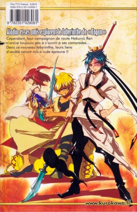 Aladin et ses amis s'en vont braver le labyrinthe de « Zagan ». Cependant, leur compagnon de route Hakuryû Ren n'arrive toujours pas à s'ouvrir à ses camarades... Dans ce nouveau labyrinthe, leurs liens d'amitié seront mis à rude épreuve !!